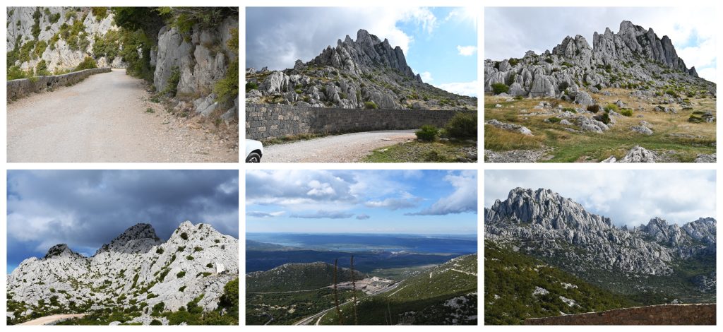 Preko Tulovih Greda je početkom 19. vijeka napravljen široki put – Majstorska cesta, prva državna cesta koja je spajala jug i sjever Hrvatske i bila duga 41 kilometar. Ona je, između ostalog bila spona između Beča i Zadra. Na nju smo računali kada smo krenuli po vjetru koji je nosio djelove drveća. Cesta je donekle asfaltirana, ali i tamo gdje nije put je širok, a podloga skroz pristojna. Na samom vrhu smo naišli na ozidani zid. Kada smo se autom pomjerili metar ispred njega osjetili smo da usljed naleta vjetra nemamo kontrolu nad njim pa smo se brzo vratili nazad. Već smo odustali od penjanja jer po ovako kamenitom terenu ništa ne smije da ti ometa koncentraciju, a kamoli da te baca okolo, naokolo. Ponadali smo se da ćemo bar prošetati. Čim sam krenula da izađem iz auta vidjelo se da to nije dobra ideja. Ali morala sam napraviti bar neki snimak, pročitati šta piše na memorijalnim pločama, doći do kapelice. Kad sam uspjela da se vratim da me vjetar ne odnese do Novigradskog mora, dobro sam prošla. Tad me uhvatila panika. Hoće li auto biti stabilno dok se ne spustimo. Natjerala sam Duška da istog trena krenemo nazad. U povratku smo se mimoišli sa planinarima iz Slovenije. Ne saznadoh uhvati li i njih panika ili su svoj naum izveli do kraja. Tipovala bih na ovo drugo.